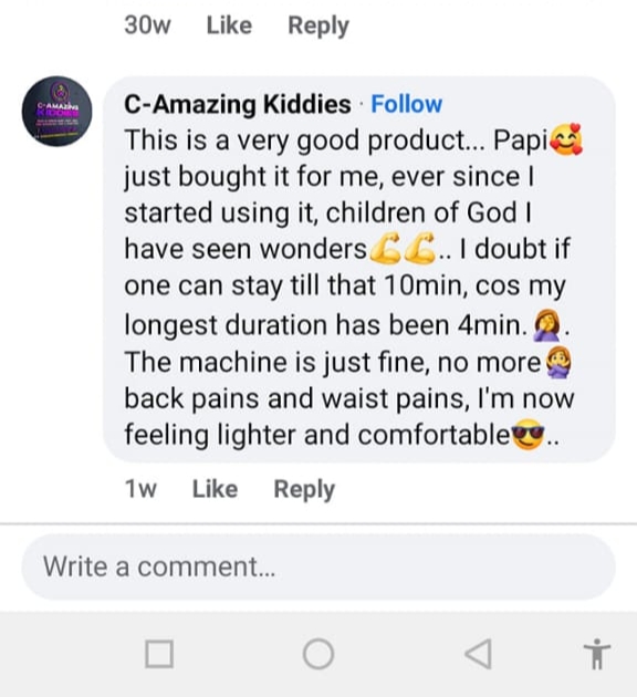 I tried many medications all to no avail. My doctor recommended excercise but I had little or no time for this due to the nature of my work, until one day my friend Favour introduced me to this amazing body massaging machine that helped me get out of these challenges, now I sleep like a new burn baby with ease, I became lighter and the pains were all gone.